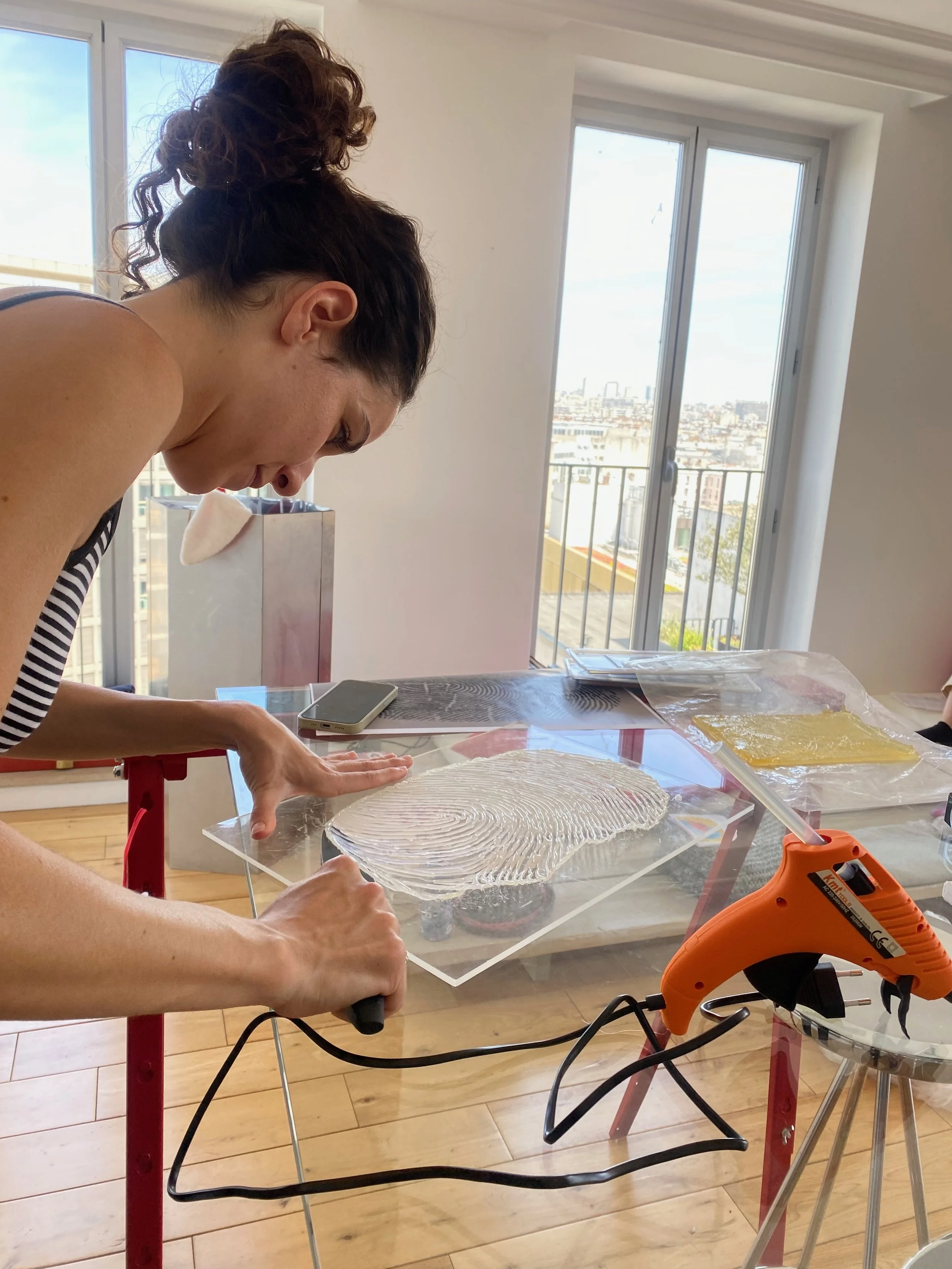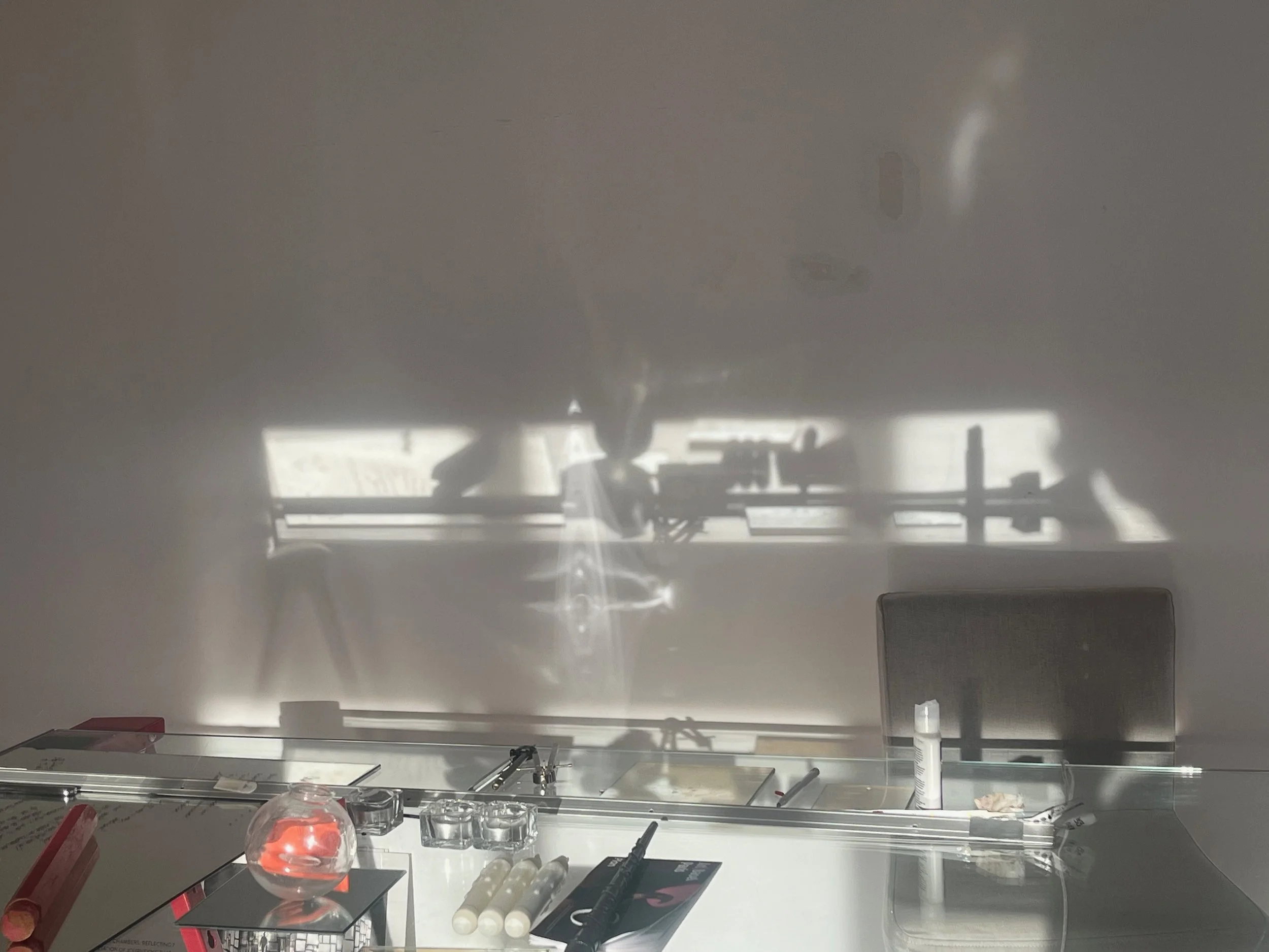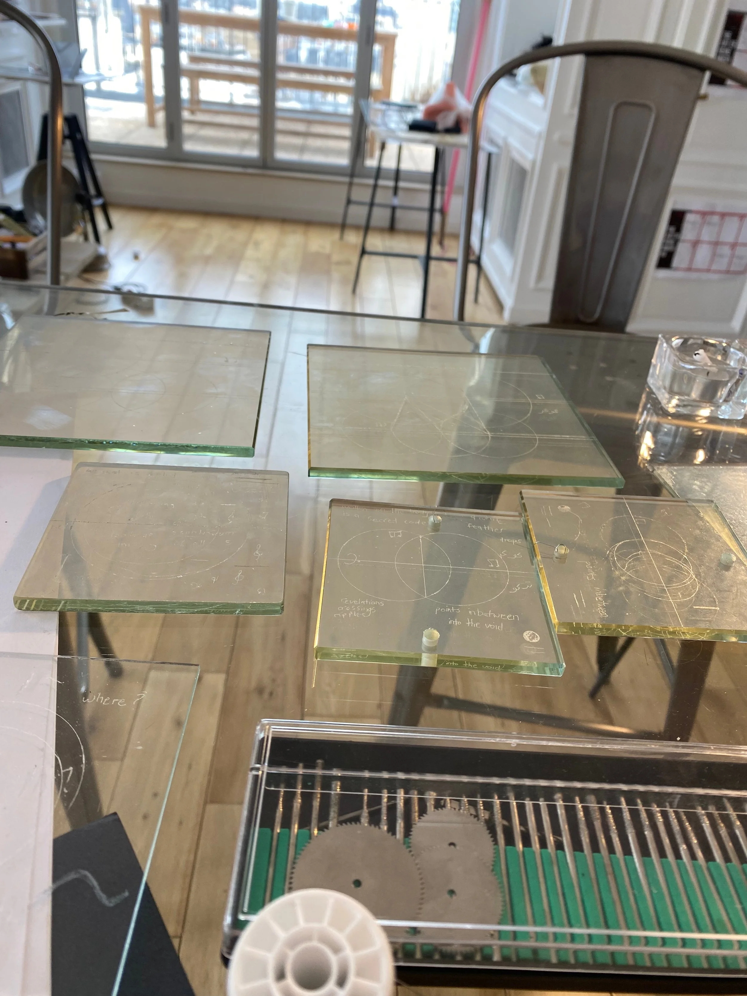 Materials served as both anchors and portals. Water, skin, sugars, and mirrors—each artist’s initial point of departure—moved beyond their original contexts. Each artist’s process informed the next. They dissolved into one another, reshaping as shared vocabularies. Vessels and containers appeared in multiple forms, continually transforming into new vessels, new states, new modes of holding. Everything seemed to be constantly in motion, each element moving at its own tempo—an attention to dimensions and perceptions that highlighted the “power of ten” as both zooming in and zooming out, fractal geometries, and the sense of portals opening through repetition. As our Sufi teacher kept telling us “Find your speed.”